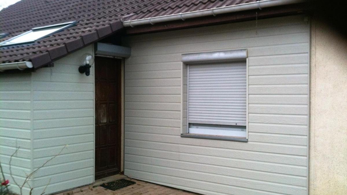 Réfection du bardage métal après remise à neuf de l'isolant et peinture du crépis, Société Sanitrap à Saint-Vit (25).