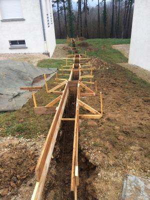 Montage d'un mur de plots en séparation de propriété à Thise (25).